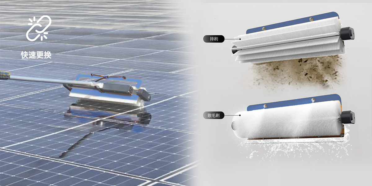 LX-H404滾刷光伏清洗機采用桿頭鵝頸設計,比直桿省力,更符合人體工程學,施工人員手握清潔桿按壓清洗更輕松,效率能明顯提高,一天可清洗約0.5-1.2MW。伸縮桿長1.5-7.5米,可自由伸縮,水洗干洗兩用,可適應各種復雜地形環(huán)境;鋰電池組續(xù)航約4-5小時,工作起來更加高效。產(chǎn)品設計合理,操作簡單,有效降低人員的勞動強度。
