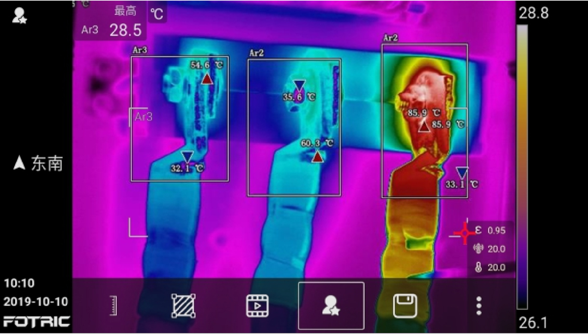 LX-F300光伏手持熱成像儀具備專業的本機分析功能,在檢測現場即可對拍攝的熱像圖片進行專業分析,避免重復拍攝,大幅提高現場診斷效率。同時可以對不同目標區域單獨設置發射率,實現不同材質的準確測溫。
